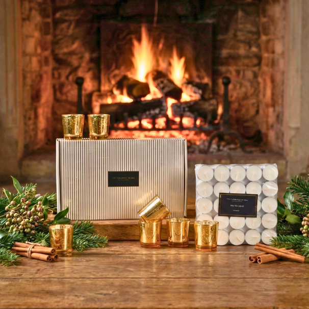 Every gathering deserves a little glow. Inside this box are 100 tea lights and 6 golden votives, ready to turn any evening into a memory.
